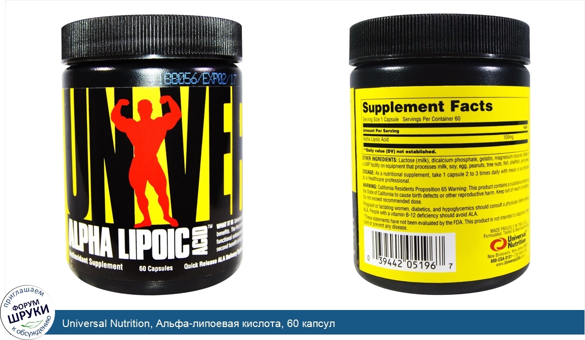 Друзья, если у вас есть отзыв/дополнение/комментарий/вопрос относительно Universal Nutrition, Альфа-липоевая кислота, 60 капсул - напишите его ответом в эту тему (это будет полезно всему сообществу в целом и вам в отдельности).