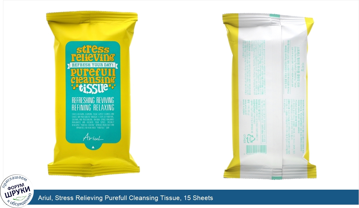 Ariul, Stress Relieving Purefull Cleansing Tissue, 15 Sheets