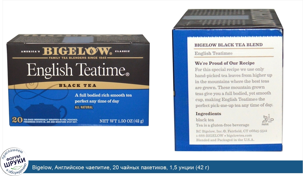 Друзья, если у вас есть отзыв/дополнение/комментарий/вопрос относительно Bigelow, Английское чаепитие, 20 чайных пакетиков, 1,5 унции (42 г) - напишите его ответом в эту тему (это будет полезно всему сообществу в целом и вам в отдельности).