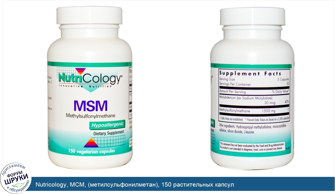 Друзья, если у вас есть отзыв/дополнение/комментарий/вопрос относительно Nutricology, МСМ, (метилсульфонилметан), 150 растительных капсул - напишите его ответом в эту тему (это будет полезно всему сообществу в целом и вам в отдельности).