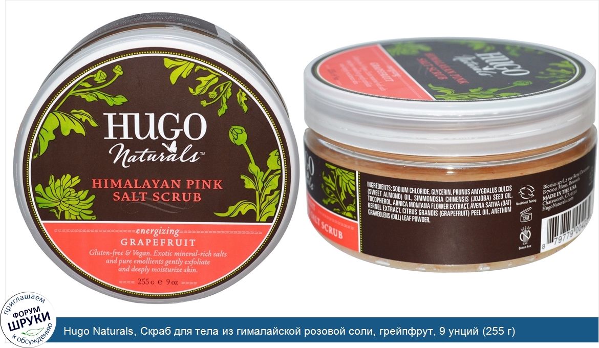 Hugo Naturals, Скраб для тела из гималайской розовой соли, грейпфрут, 9 унций (255 г)