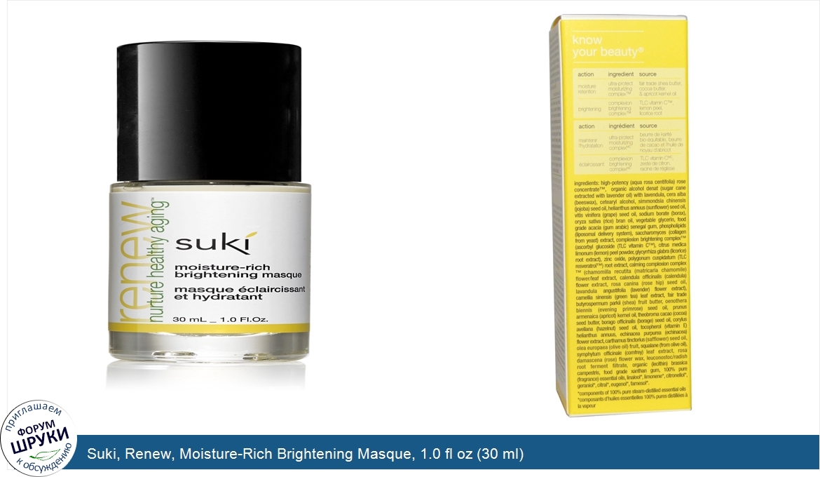 Друзья, если у вас есть отзыв/дополнение/комментарий/вопрос относительно Suki, Renew, Moisture-Rich Brightening Masque, 1.0 fl oz (30 ml) - напишите его ответом в эту тему (это будет полезно всему сообществу в целом и вам в отдельности).