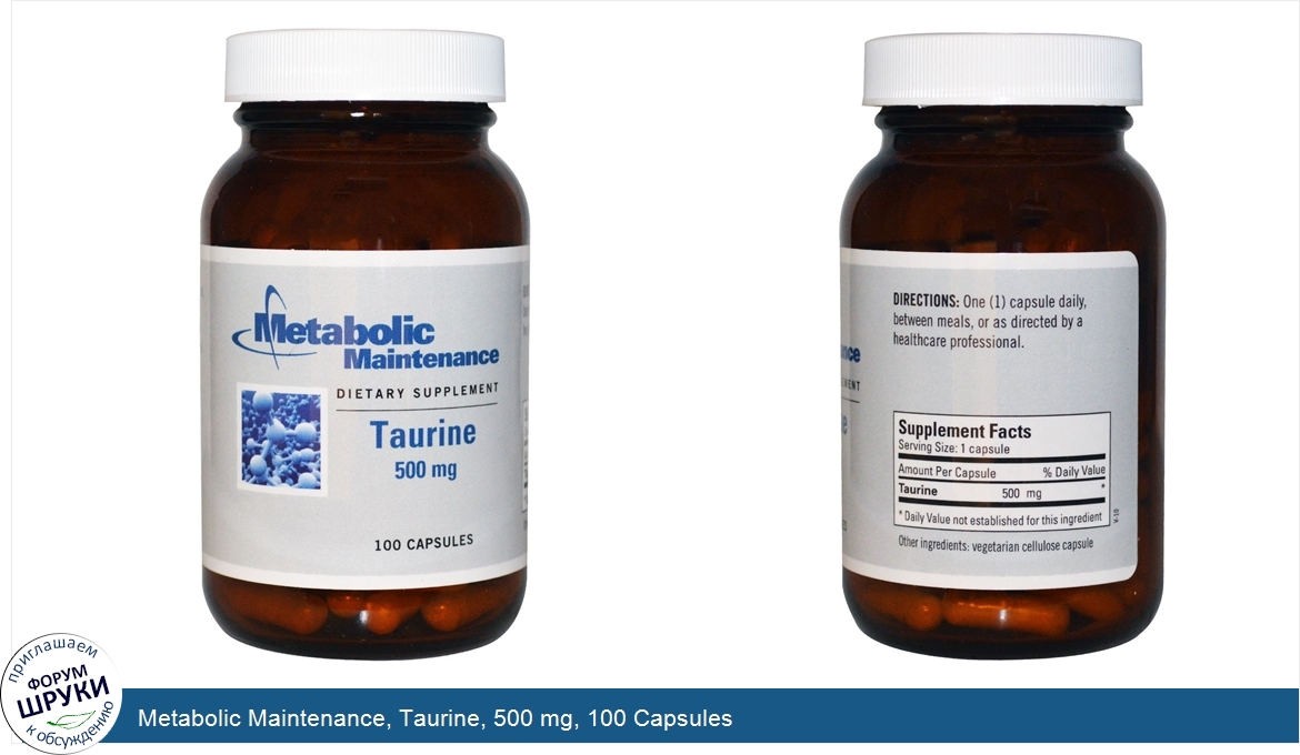 Друзья, если у вас есть отзыв/дополнение/комментарий/вопрос относительно Metabolic Maintenance, Taurine, 500 mg, 100 Capsules - напишите его ответом в эту тему (это будет полезно всему сообществу в целом и вам в отдельности).