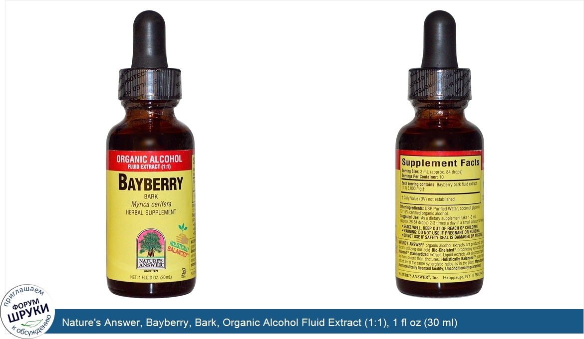 Nature\'s Answer, Bayberry, Bark, Organic Alcohol Fluid Extract (1:1), 1 fl oz (30 ml)