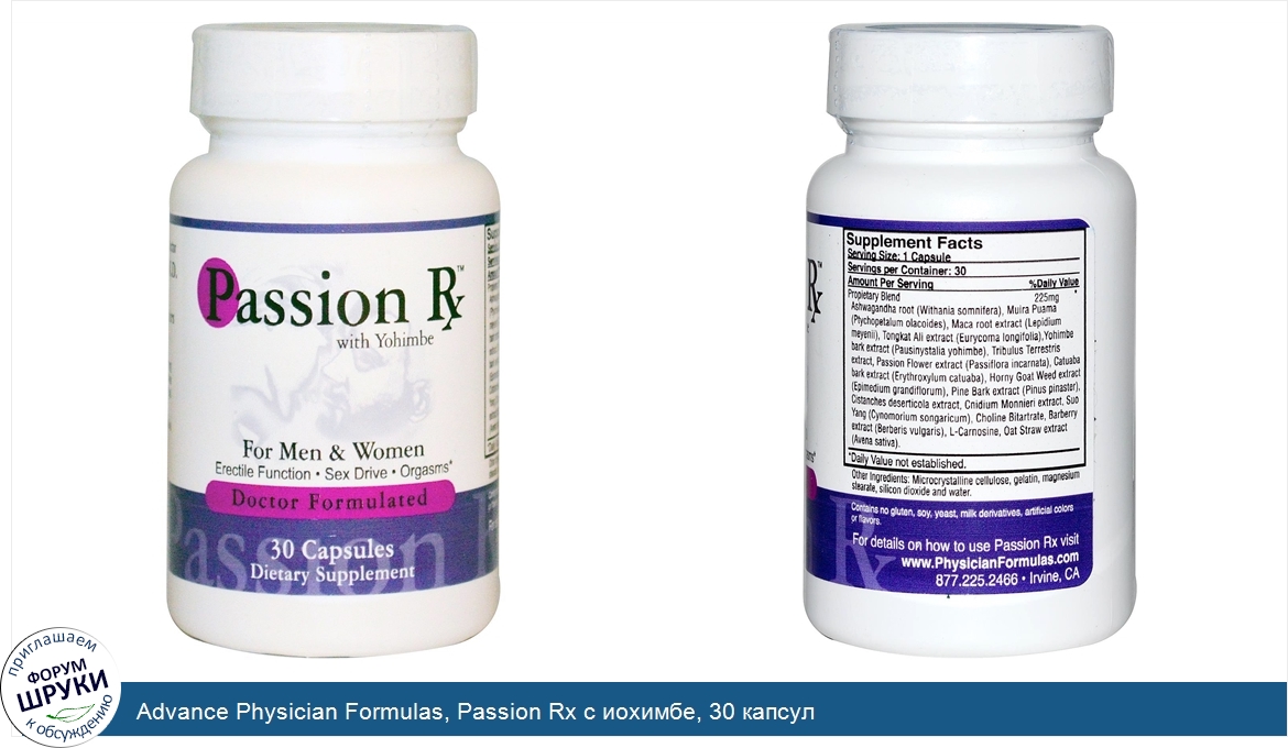 Advance Physician Formulas, Passion Rx с иохимбе, 30 капсул