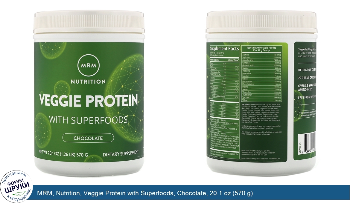 Друзья, если у вас есть отзыв/дополнение/комментарий/вопрос относительно MRM, Nutrition, Veggie Protein with Superfoods, Chocolate, 20.1 oz (570 g) - напишите его ответом в эту тему (это будет полезно всему сообществу в целом и вам в отдельности).