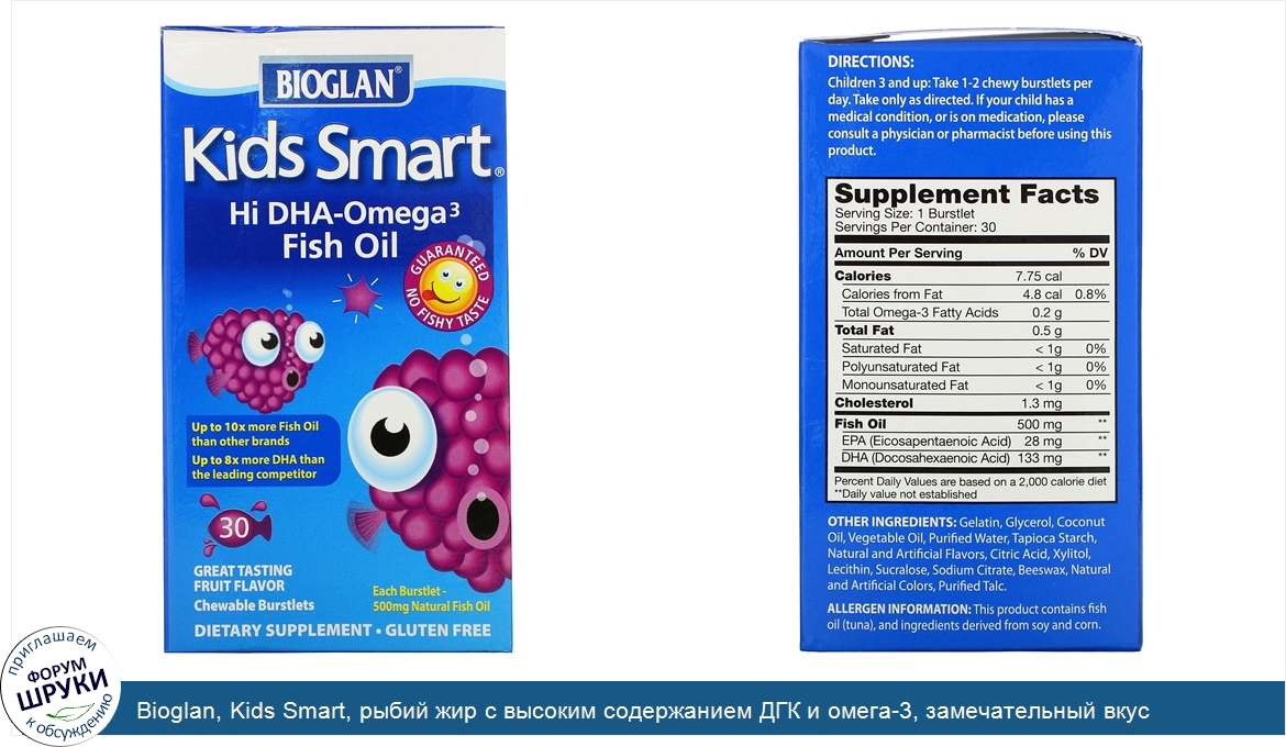 Друзья, если у вас есть отзыв/дополнение/комментарий/вопрос относительно Bioglan, Kids Smart, рыбий жир с высоким содержанием ДГК и омега-3, замечательный вкус ягод, 30 жевательных капсул, лопающихся во рту - напишите его ответом в эту тему (это будет полезно всему сообществу в целом и вам в отдельности).