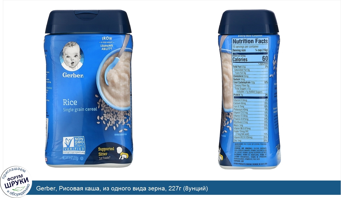 Друзья, если у вас есть отзыв/дополнение/комментарий/вопрос относительно Gerber, Рисовая каша, из одного вида зерна, 227г (8унций) - напишите его ответом в эту тему (это будет полезно всему сообществу в целом и вам в отдельности).