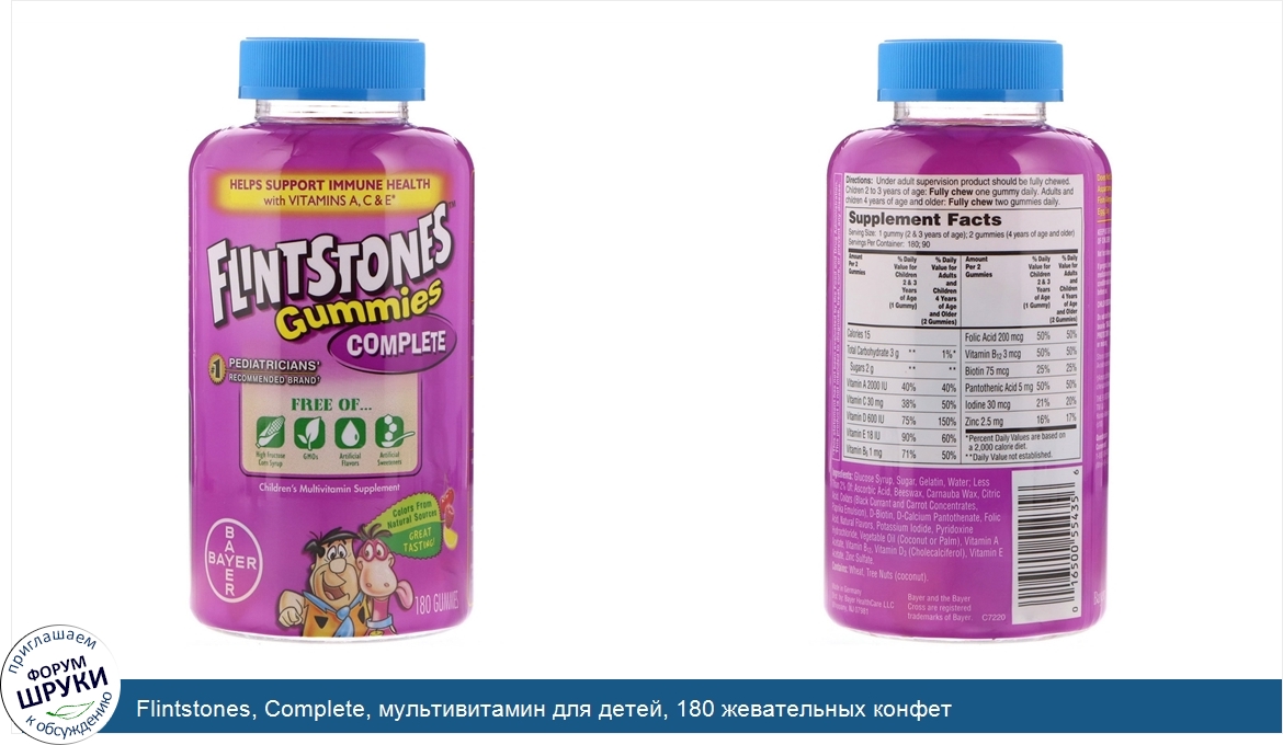 Друзья, если у вас есть отзыв/дополнение/комментарий/вопрос относительно Flintstones, Complete, мультивитамин для детей, 180 жевательных конфет - напишите его ответом в эту тему (это будет полезно всему сообществу в целом и вам в отдельности).