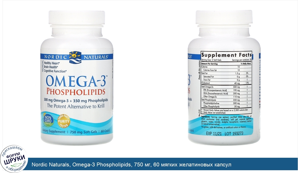 Друзья, если у вас есть отзыв/дополнение/комментарий/вопрос относительно Nordic Naturals, Omega-3 Phospholipids, 750 мг, 60 мягких желатиновых капсул - напишите его ответом в эту тему (это будет полезно всему сообществу в целом и вам в отдельности).