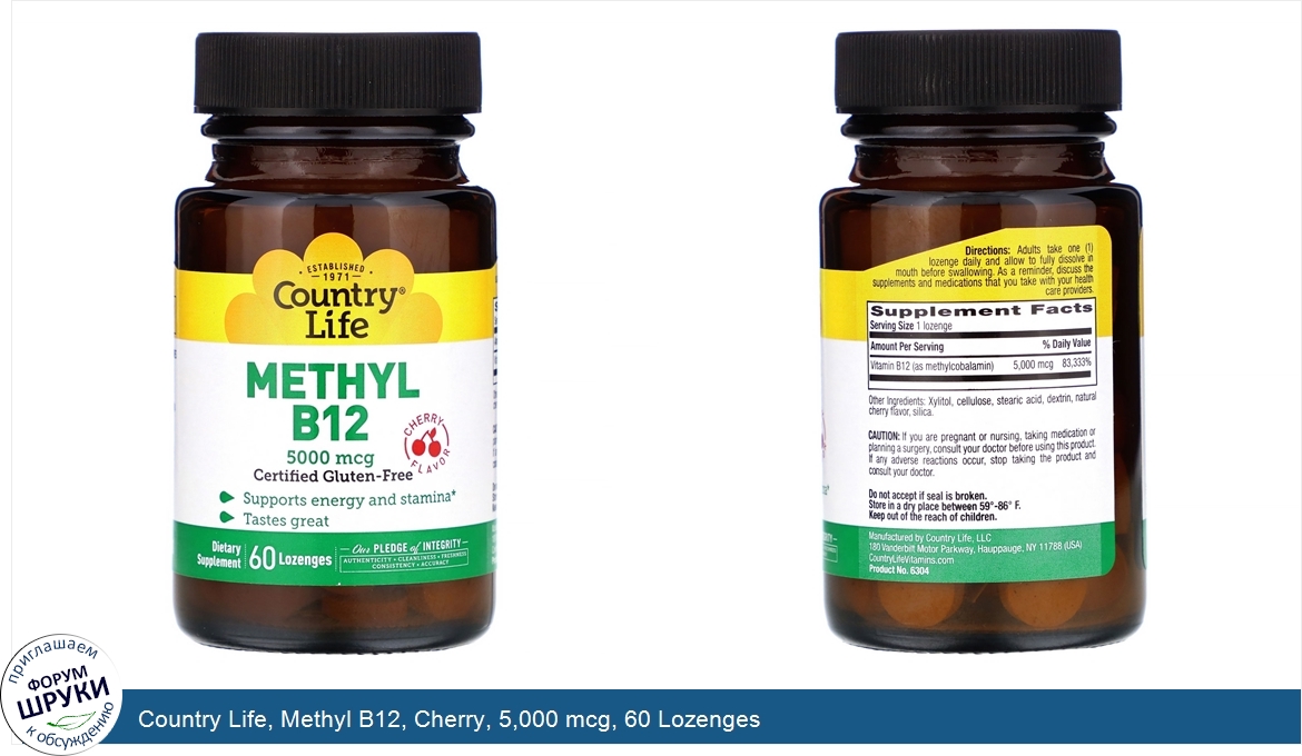 Country Life, Methyl B12, Cherry, 5,000 mcg, 60 Lozenges