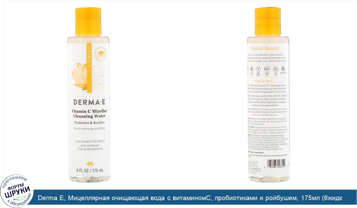 Друзья, если у вас есть отзыв/дополнение/комментарий/вопрос относительно Derma E, Мицеллярная очищающая вода с витаминомC, пробиотиками и ройбушем, 175мл (6жидк.унций) - напишите его ответом в эту тему (это будет полезно всему сообществу в целом и вам в отдельности).