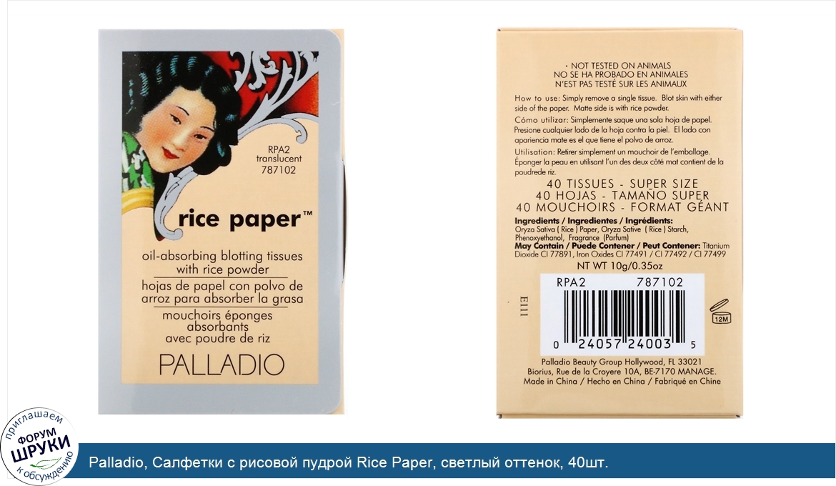 Друзья, если у вас есть отзыв/дополнение/комментарий/вопрос относительно Palladio, Салфетки с рисовой пудрой Rice Paper, светлый оттенок, 40шт. - напишите его ответом в эту тему (это будет полезно всему сообществу в целом и вам в отдельности).
