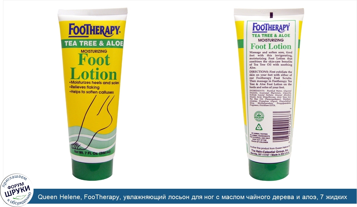 Queen Helene, FooTherapy, увлажняющий лосьон для ног с маслом чайного дерева и алоэ, 7 жидких унций (200 мл)