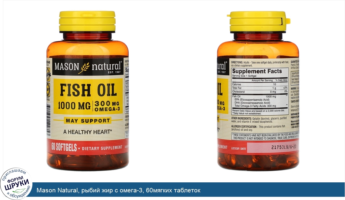 Друзья, если у вас есть отзыв/дополнение/комментарий/вопрос относительно Mason Natural, рыбий жир с омега-3, 60мягких таблеток - напишите его ответом в эту тему (это будет полезно всему сообществу в целом и вам в отдельности).