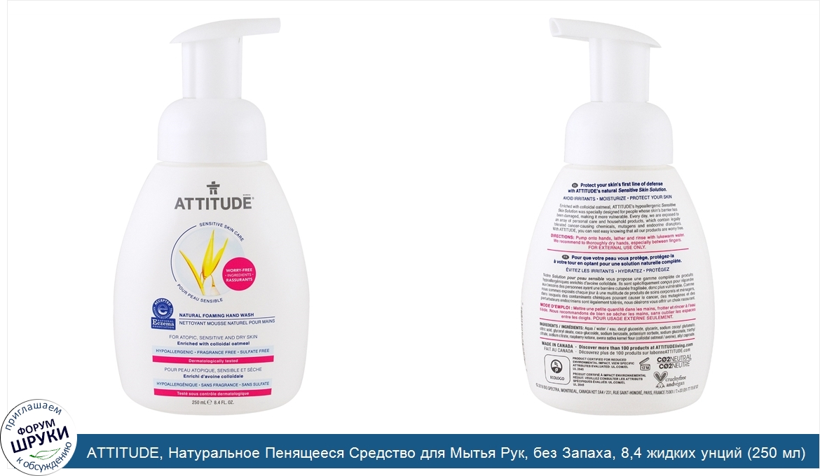 Друзья, если у вас есть отзыв/дополнение/комментарий/вопрос относительно ATTITUDE, Натуральное Пенящееся Средство для Мытья Рук, без Запаха, 8,4 жидких унций (250 мл) - напишите его ответом в эту тему (это будет полезно всему сообществу в целом и вам в отдельности).