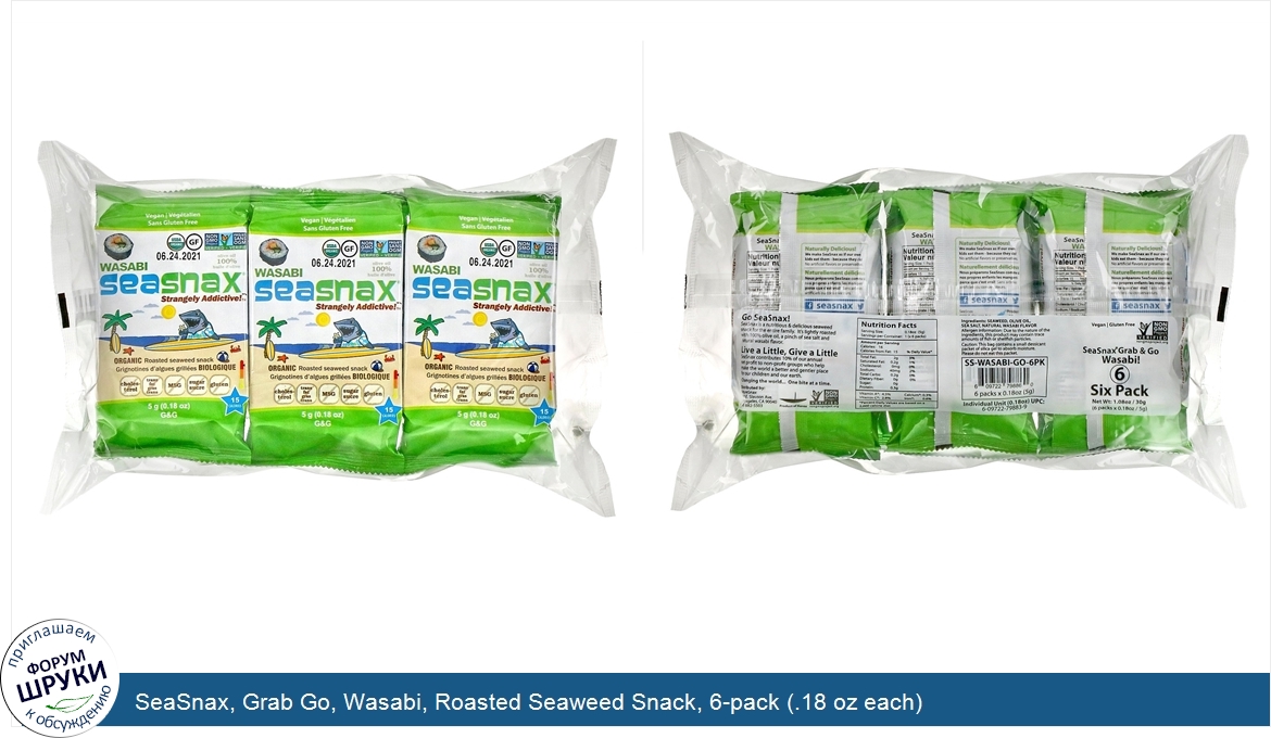 Друзья, если у вас есть отзыв/дополнение/комментарий/вопрос относительно SeaSnax, Grab Go, Wasabi, Roasted Seaweed Snack, 6-pack (.18 oz each) - напишите его ответом в эту тему (это будет полезно всему сообществу в целом и вам в отдельности).
