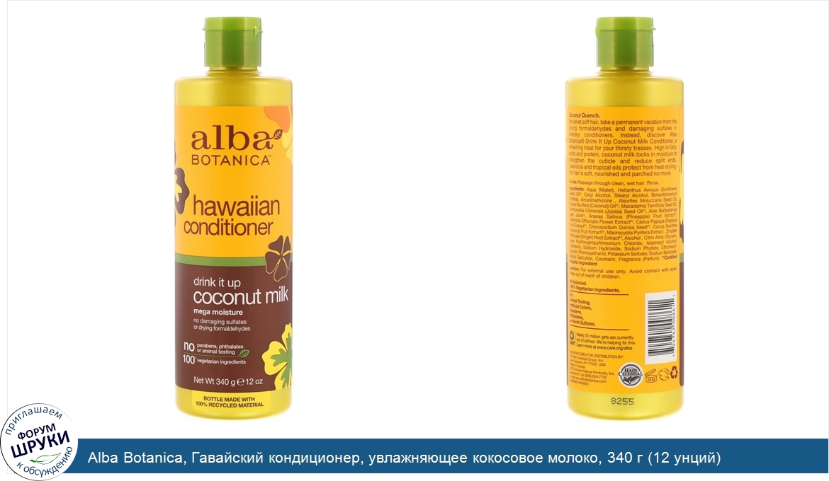 Друзья, если у вас есть отзыв/дополнение/комментарий/вопрос относительно Alba Botanica, Гавайский кондиционер, увлажняющее кокосовое молоко, 340 г (12 унций) - напишите его ответом в эту тему (это будет полезно всему сообществу в целом и вам в отдельности).