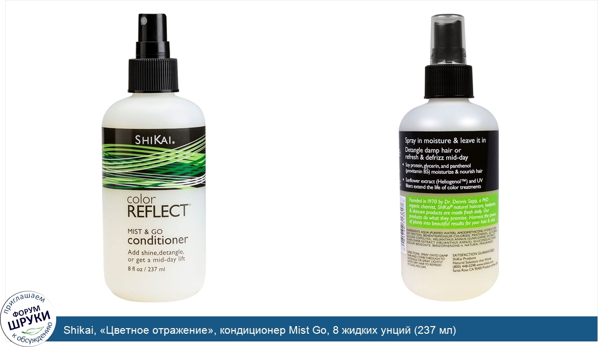 Друзья, если у вас есть отзыв/дополнение/комментарий/вопрос относительно Shikai, «Цветное отражение», кондиционер Mist Go, 8 жидких унций (237 мл) - напишите его ответом в эту тему (это будет полезно всему сообществу в целом и вам в отдельности).