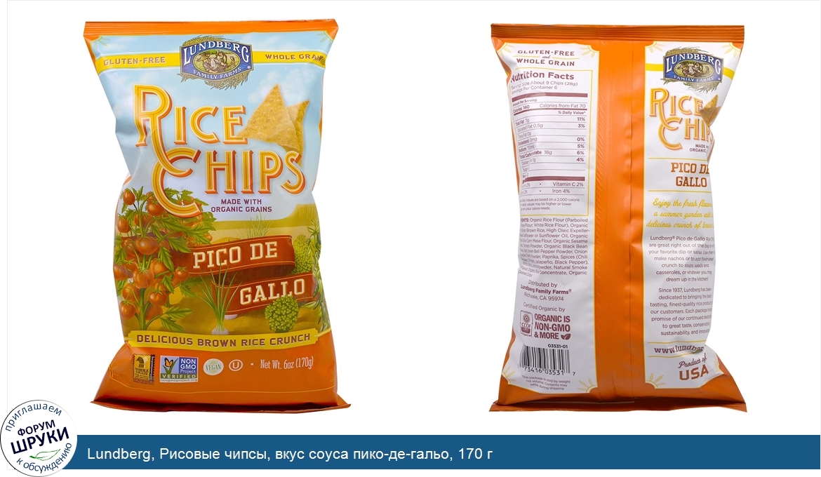 Друзья, если у вас есть отзыв/дополнение/комментарий/вопрос относительно Lundberg, Рисовые чипсы, вкус соуса пико-де-гальо, 170 г - напишите его ответом в эту тему (это будет полезно всему сообществу в целом и вам в отдельности).