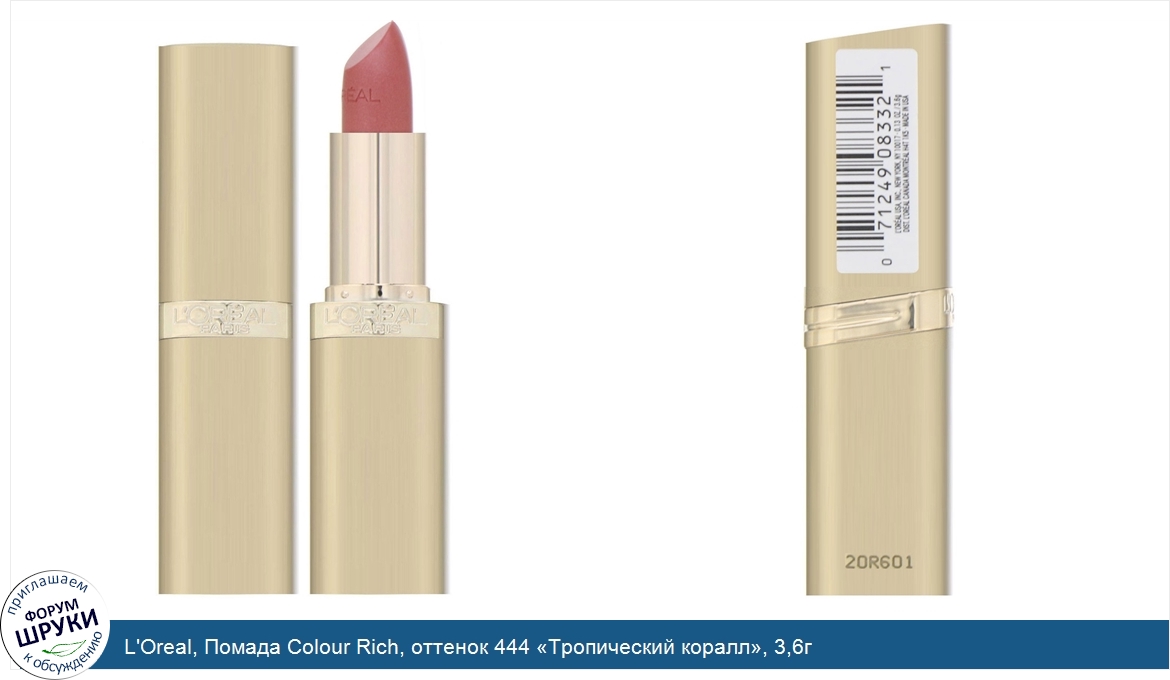 ru L'Oreal, Помада Colour Rich, оттенок 444 «Тропический коралл», 3,6г