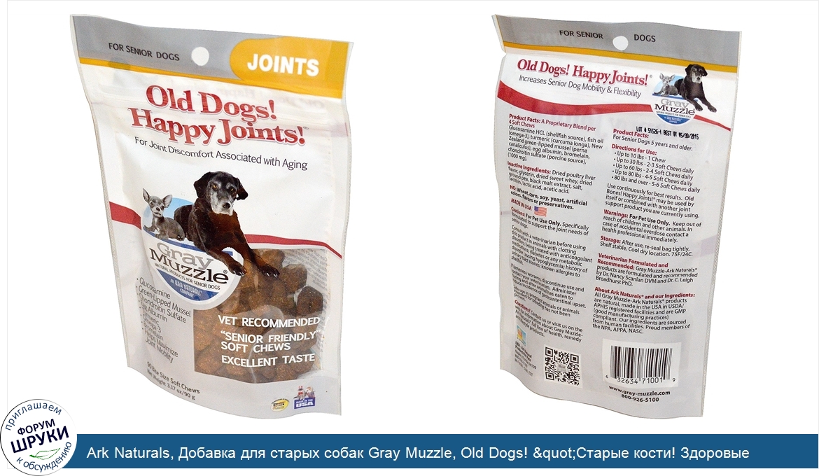 Ark Naturals, Добавка для старых собак Gray Muzzle, Old Dogs! "Старые кости! Здоровые суставы", 90 мягких жевательных конфет, 3.17 унций (90 г)