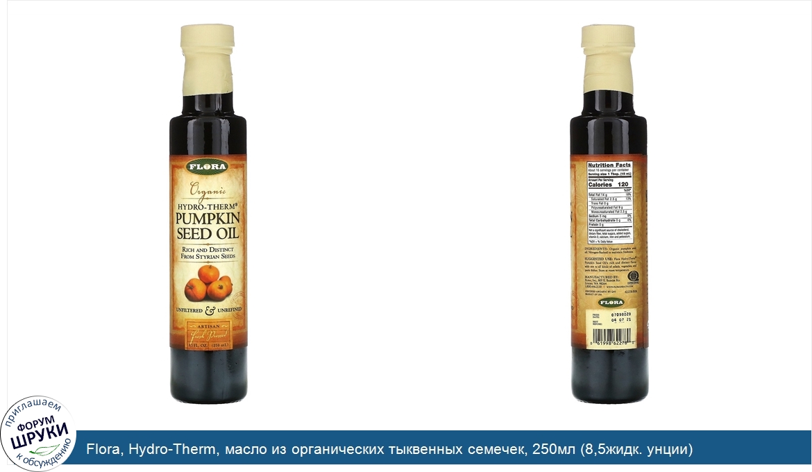 Друзья, если у вас есть отзыв/дополнение/комментарий/вопрос относительно Flora, Hydro-Therm, масло из органических тыквенных семечек, 250мл (8,5жидк. унции) - напишите его ответом в эту тему (это будет полезно всему сообществу в целом и вам в отдельности).