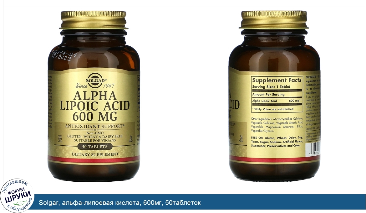 ru Solgar, альфа-липоевая кислота, 600мг, 50таблеток
