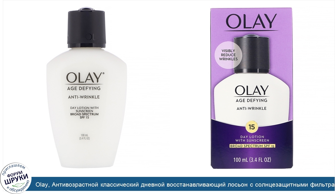 Olay, Антивозрастной классический дневной восстанавливающий лосьон с солнцезащитными фильтрами SPF15, 100мл (3,4жидк.унции)