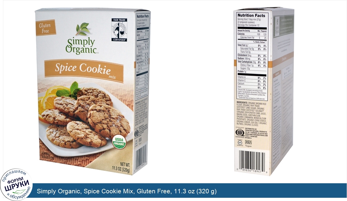 Друзья, если у вас есть отзыв/дополнение/комментарий/вопрос относительно Simply Organic, Spice Cookie Mix, Gluten Free, 11.3 oz (320 g) - напишите его ответом в эту тему (это будет полезно всему сообществу в целом и вам в отдельности).