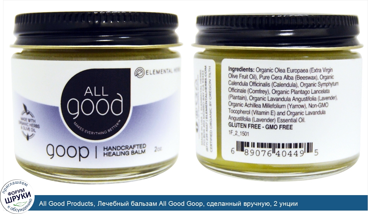 Друзья, если у вас есть отзыв/дополнение/комментарий/вопрос относительно All Good Products, Лечебный бальзам All Good Goop, сделанный вручную, 2 унции - напишите его ответом в эту тему (это будет полезно всему сообществу в целом и вам в отдельности).