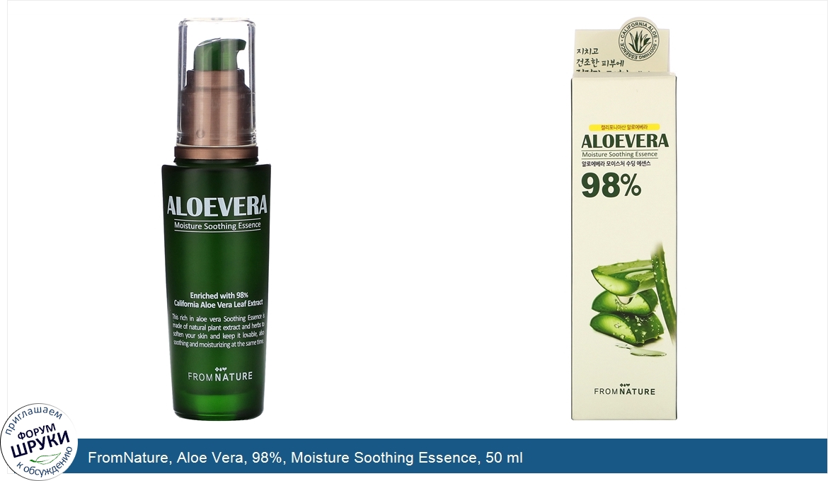 FromNature, Aloe Vera, 98%, Moisture Soothing Essence, 50 ml