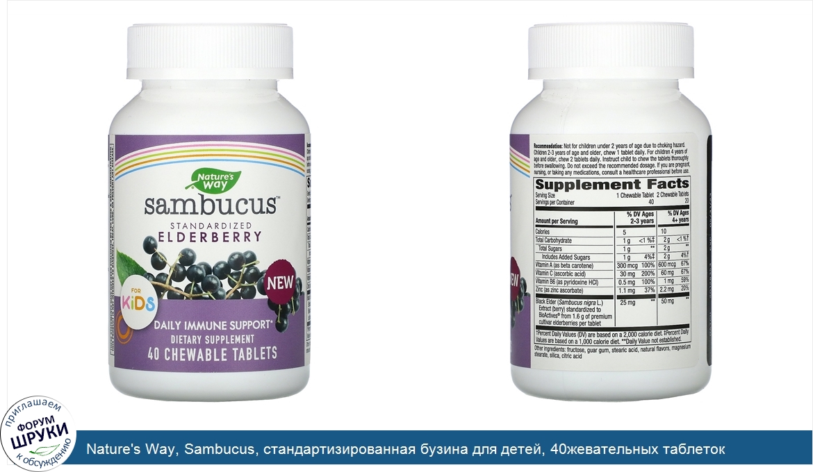 Nature's Way, Sambucus, стандартизированная бузина для детей, 40жевательных таблеток