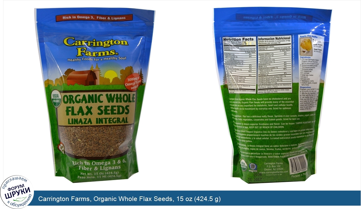 Друзья, если у вас есть отзыв/дополнение/комментарий/вопрос относительно Carrington Farms, Organic Whole Flax Seeds, 15 oz (424.5 g) - напишите его ответом в эту тему (это будет полезно всему сообществу в целом и вам в отдельности).