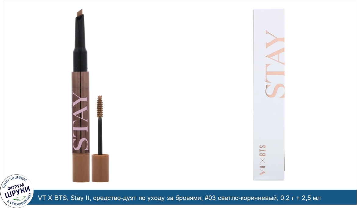 VT X BTS, Stay It, средство-дуэт по уходу за бровями, #03 светло-коричневый, 0,2 г + 2,5 мл