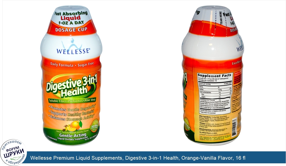Wellesse Premium Liquid Supplements, Digestive 3-in-1 Health, Orange-Vanilla Flavor, 16 fl oz (480 ml)