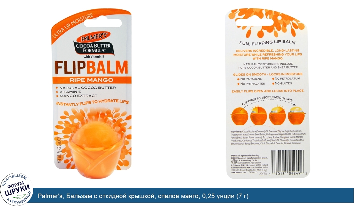 Друзья, если у вас есть отзыв/дополнение/комментарий/вопрос относительно Palmer's, Бальзам с откидной крышкой, спелое манго, 0,25 унции (7 г) - напишите его ответом в эту тему (это будет полезно всему сообществу в целом и вам в отдельности).
