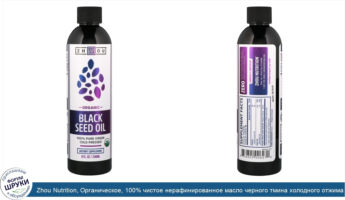 Zhou Nutrition, Органическое, 100% чистое нерафинированное масло черного тмина холодного отжима, 8 ж. унц. (240 мл)