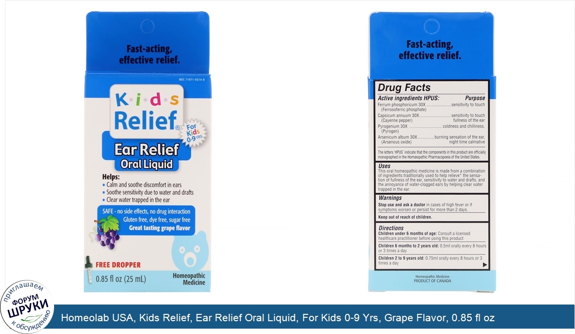 Друзья, если у вас есть отзыв/дополнение/комментарий/вопрос относительно Homeolab USA, Kids Relief, Ear Relief Oral Liquid, For Kids 0-9 Yrs, Grape Flavor, 0.85 fl oz (25 ml) - напишите его ответом в эту тему (это будет полезно всему сообществу в целом и вам в отдельности).