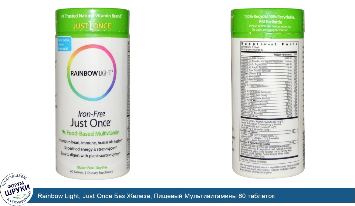 Друзья, если у вас есть отзыв/дополнение/комментарий/вопрос относительно Rainbow Light, Just Once Без Железа, Пищевый Мультивитамины 60 таблеток - напишите его ответом в эту тему (это будет полезно всему сообществу в целом и вам в отдельности).