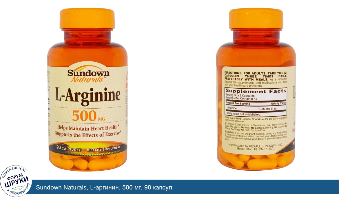 Sundown Naturals, L-аргинин, 500 мг, 90 капсул