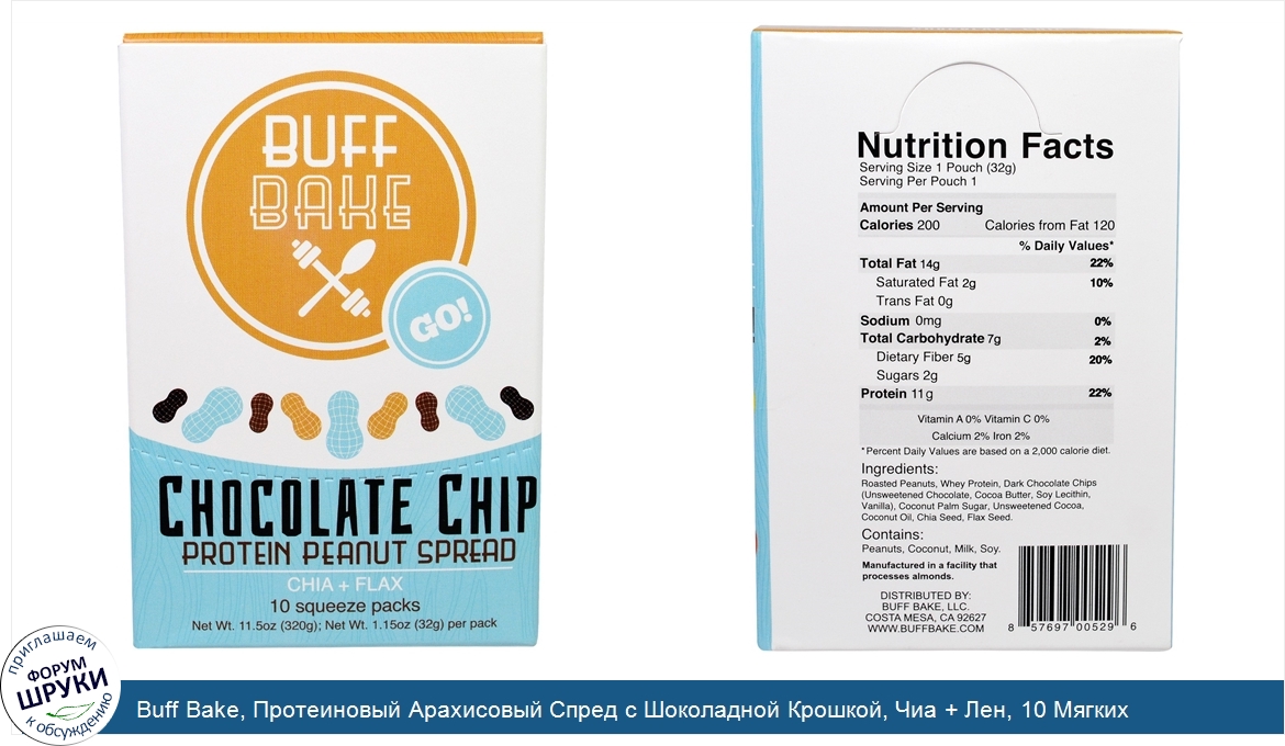 Друзья, если у вас есть отзыв/дополнение/комментарий/вопрос относительно Buff Bake, Протеиновый Арахисовый Спред с Шоколадной Крошкой, Чиа + Лен, 10 Мягких Упаковок, по 1,15 унции (32 г) каждая - напишите его ответом в эту тему (это будет полезно всему сообществу в целом и вам в отдельности).