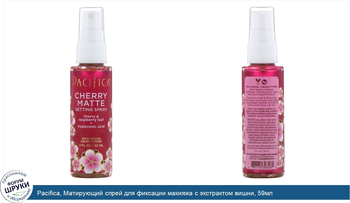 ru Pacifica, Матирующий спрей для фиксации макияжа с экстрактом вишни, 59мл