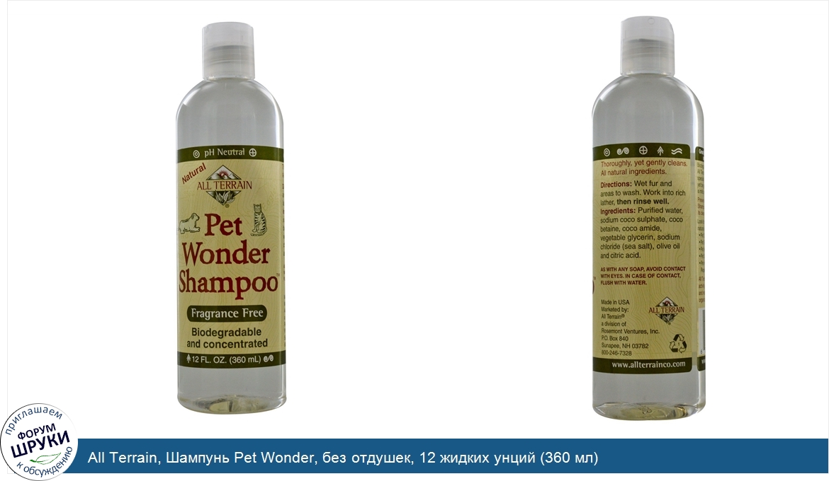 All Terrain, Шампунь Pet Wonder, без отдушек, 12 жидких унций (360 мл)