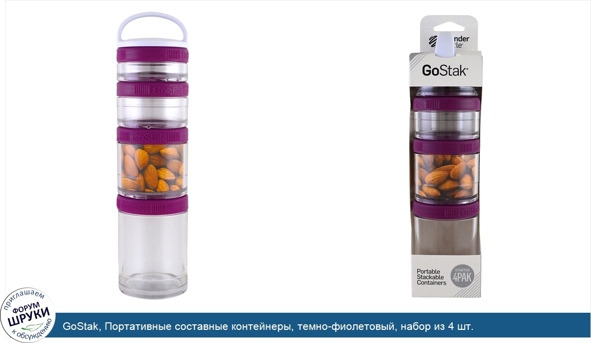 GoStak, Портативные составные контейнеры, темно-фиолетовый, набор из 4 шт.