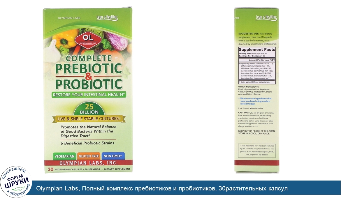 Друзья, если у вас есть отзыв/дополнение/комментарий/вопрос относительно Olympian Labs, Полный комплекс пребиотиков и пробиотиков, 30растительных капсул - напишите его ответом в эту тему (это будет полезно всему сообществу в целом и вам в отдельности).