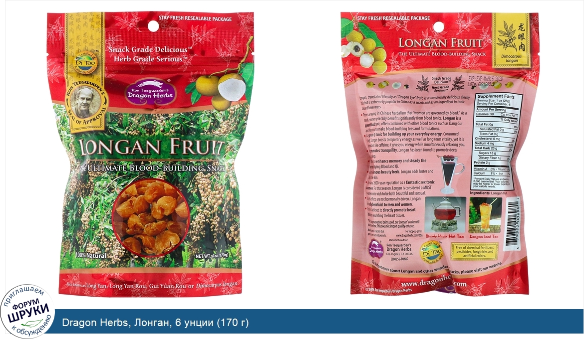 Друзья, если у вас есть отзыв/дополнение/комментарий/вопрос относительно Dragon Herbs, Лонган, 6 унции (170 г) - напишите его ответом в эту тему (это будет полезно всему сообществу в целом и вам в отдельности).