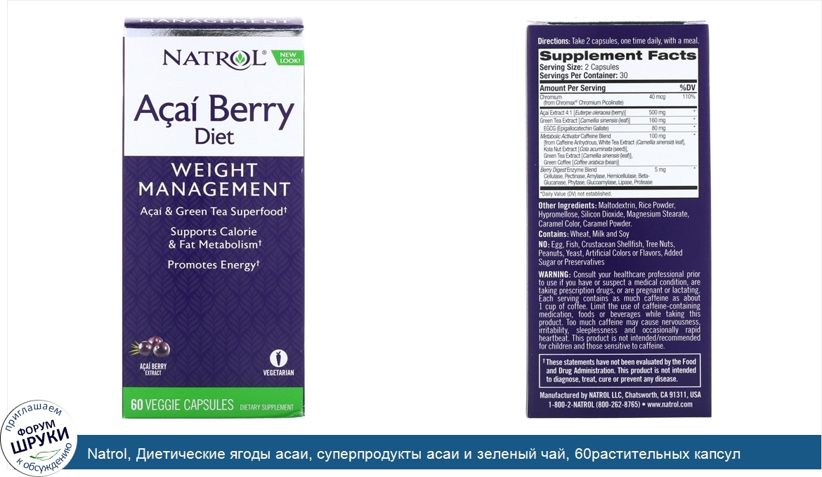 Друзья, если у вас есть отзыв/дополнение/комментарий/вопрос относительно Natrol, Диетические ягоды асаи, суперпродукты асаи и зеленый чай, 60растительных капсул - напишите его ответом в эту тему (это будет полезно всему сообществу в целом и вам в отдельности).