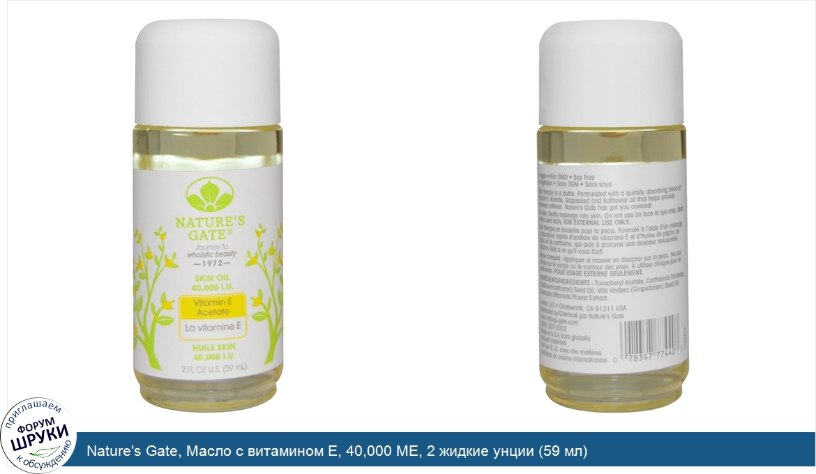Nature\'s Gate, Масло с витамином E, 40,000 МЕ, 2 жидкие унции (59 мл)
