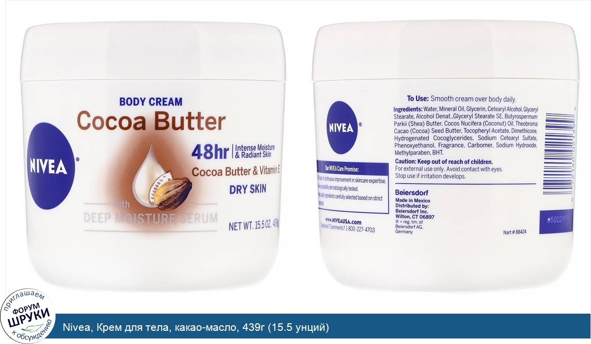 Nivea, Крем для тела, какао-масло, 439г (15.5 унций)